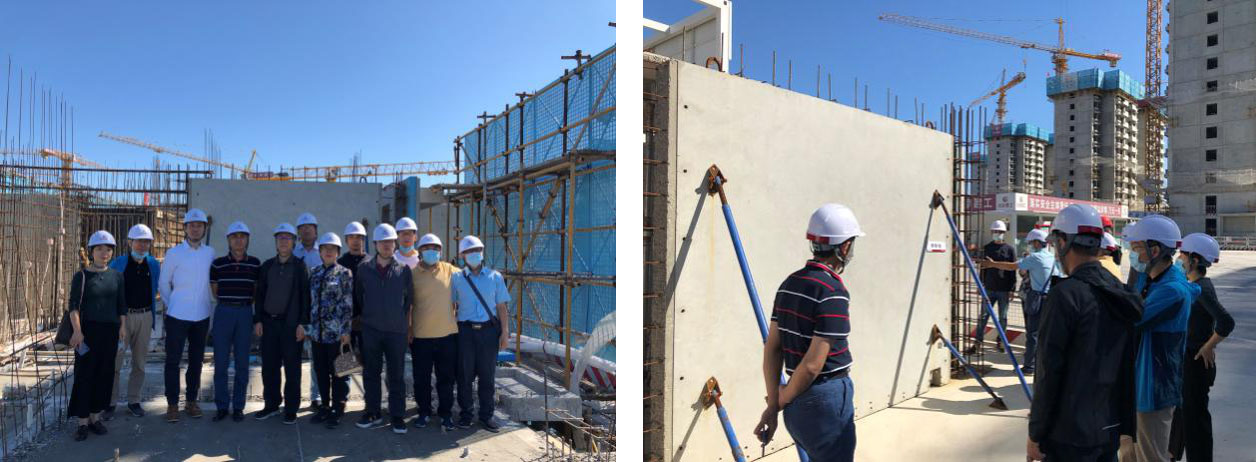 項目負責人張捷所長詳細介紹了項目的設(shè)計過程、設(shè)計難點及施工現(xiàn)場服務(wù)等工作,設(shè)計六所駐場工程師劉皓、林玉泉介紹了構(gòu)件加工與安裝情況??疾旖M現(xiàn)場查看了預(yù)制構(gòu)件堆場、預(yù)制構(gòu)件安裝與連接、預(yù)制輕質(zhì)隔墻板安裝等情況,并與工程施工及監(jiān)理單位有關(guān)負責人進行座談,詳細了解工程施工及質(zhì)量驗收過程中的難點與要點。施工及監(jiān)理單位對設(shè)計六所的現(xiàn)場服務(wù)給予了充分肯定。