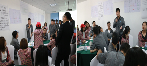 9月22日上午,在專業(yè)培訓(xùn)師的指導(dǎo)下,用貝爾賓團隊角色理論測試每位員工的團隊角色,結(jié)合該測試結(jié)果,進行了一場充滿參與性、互動性、實戰(zhàn)性、競爭性的沙盤模擬訓(xùn)練。新員工們分組抽簽決定各自的所處的地形情況及資源狀況,通過小組合作產(chǎn)出產(chǎn)品并到統(tǒng)一的市場交易獲得效益,通過效益的多少等多重指標(biāo)衡量經(jīng)營的整體狀況。培訓(xùn)中,小組成員充分地展示出了當(dāng)代年輕人開闊的思維方式,會場熱鬧紛紛。他們思維活躍、分工有序,在充分分析內(nèi)外形勢的前提下,有效經(jīng)營,各小組均獲得了十分可觀的經(jīng)營效果,得到了培訓(xùn)團隊的一致好評,最后每個小組的精彩自我點評再次將培訓(xùn)推向高潮。會后大家意猶未盡,午餐時分依然在探討思路和方法。