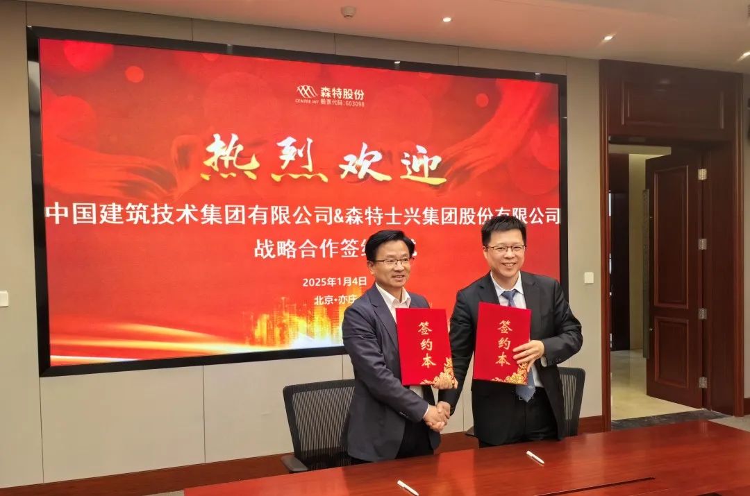 1月4日,中國建技與森特士興集團(tuán)股份有限公司(以下簡稱“森特股份”)舉行戰(zhàn)略合作協(xié)議簽約儀式。中國建技黨委副書記、總經(jīng)理余湘北,森特股份常務(wù)副總裁翁家恩出席簽約儀式。余湘北一行參觀了森特股份BIPV展廳、屋頂光伏BIPV系統(tǒng)與智慧運(yùn)維系統(tǒng),并就深入開展合作進(jìn)行座談交流。