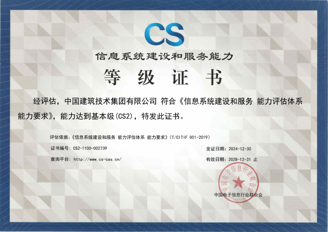 此次CS2認(rèn)證的獲得,是對(duì)中國(guó)建技在信息系統(tǒng)建設(shè)和服務(wù)領(lǐng)域?qū)I(yè)實(shí)力的肯定。中國(guó)建技將以此為基礎(chǔ),在數(shù)字化、智能化方面持續(xù)發(fā)力,持續(xù)輸出“智筑美麗城鄉(xiāng)”信息化解決方案,進(jìn)一步提升企業(yè)數(shù)字化、信息化體系建設(shè)水平,助力各行業(yè)數(shù)字化轉(zhuǎn)型升級(jí),為推動(dòng)建筑行業(yè)數(shù)字化轉(zhuǎn)型高質(zhì)量發(fā)展貢獻(xiàn)央企智慧與力量。