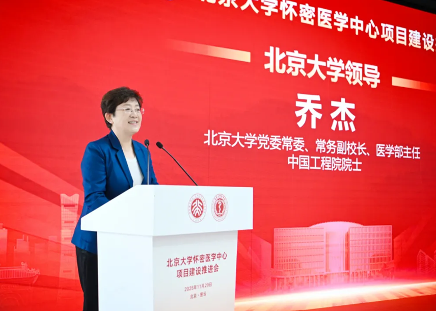 喬杰在講話中表示,站在“十四五”收官與“十五五”開局關(guān)鍵節(jié)點(diǎn),北京大學(xué)懷密醫(yī)學(xué)中心作為北大醫(yī)學(xué)未來發(fā)展的重要戰(zhàn)略,承載著北大醫(yī)學(xué)城、世界醫(yī)學(xué)谷構(gòu)想。中心以創(chuàng)建世界一流醫(yī)學(xué)教育、前沿交叉研究和創(chuàng)新轉(zhuǎn)化“三個中心”為目標(biāo),助力前沿交叉研究與科研產(chǎn)業(yè)融合,積極服務(wù)首都及密云發(fā)展,為北京國際科創(chuàng)中心與國家醫(yī)藥衛(wèi)生事業(yè)注入北大醫(yī)學(xué)新動能。