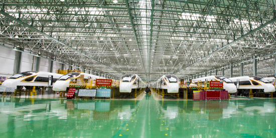 ▲中車長客“復(fù)興號(hào)”中國標(biāo)準(zhǔn)動(dòng)車組裝配現(xiàn)場