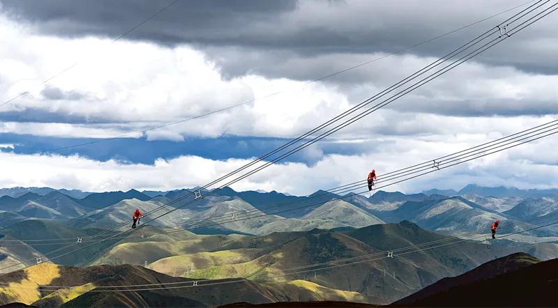 近年來,中央企業(yè)把加強黨的領(lǐng)導(dǎo)和完善公司治理統(tǒng)一起來,在維護國家戰(zhàn)略安全、保障和改善民生等方面更加擔當作為。圖為2021年6月11日,國家電網(wǎng)四川送變電公司黨員先鋒隊員對四川省甘孜州兩河口水電站500千伏送出工程線路進行消缺驗收。 國務(wù)院國資委供圖 劉湘釩/攝