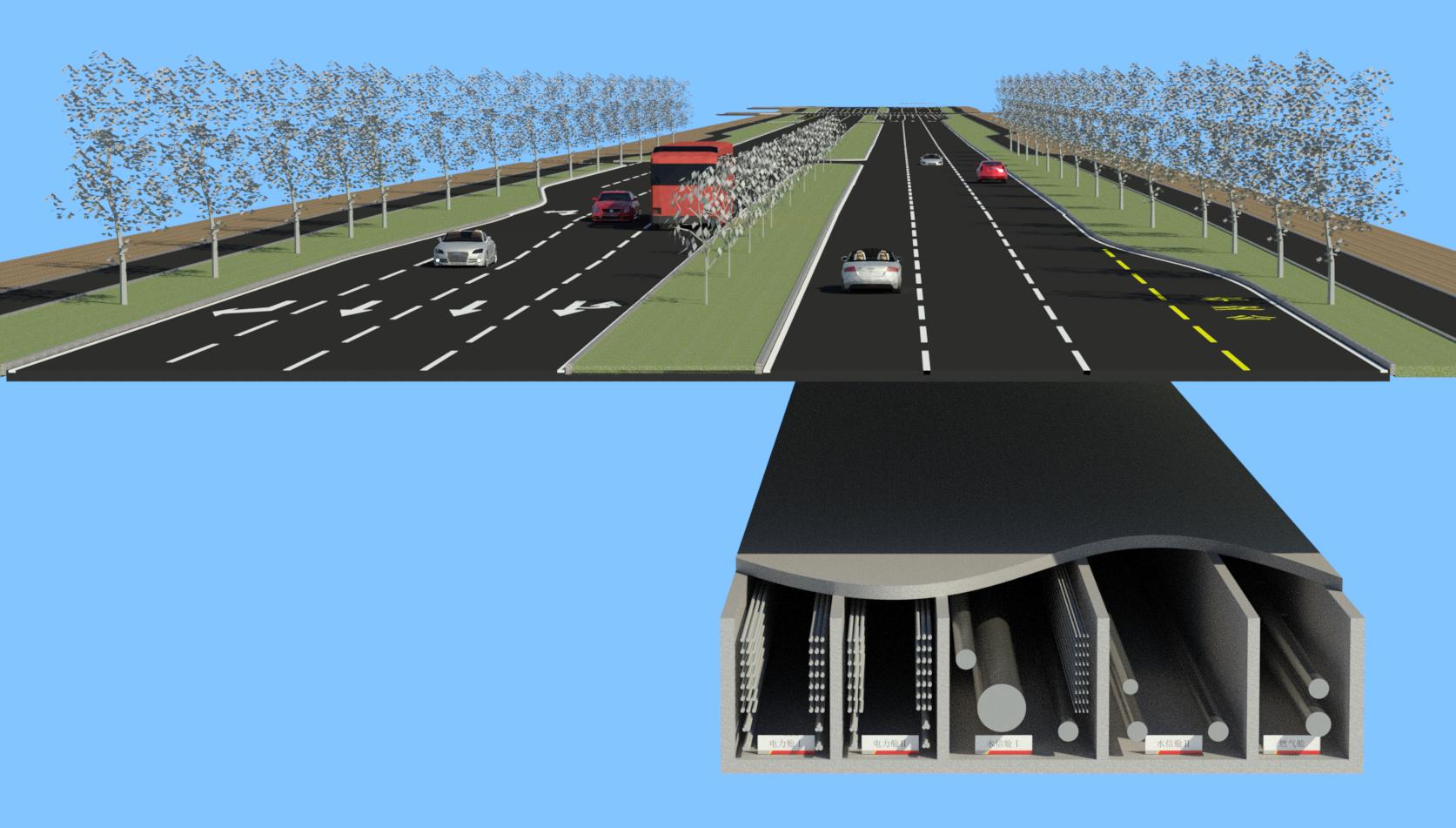 本管廊工程斷面最寬達到16.7米。其中涉及中壓、次高壓燃氣、通信、再生水、給水、電力電纜等多種類管線。
