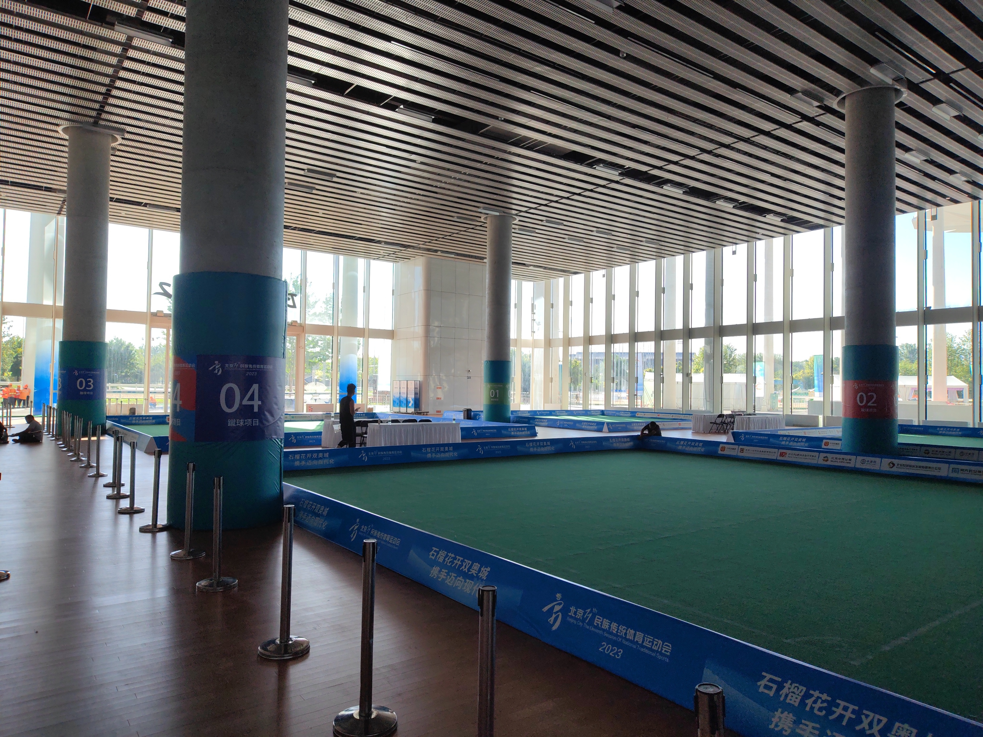 項目亮點涵蓋了總面積達11000平方米的室內綜合館運動木地板和約27000平方米的室外人工草坪,展現(xiàn)了其龐大的體量;室內外場地均配備了專業(yè)的體育照明燈具,并經過了專業(yè)的深化設計,不僅功能性強、技術性高,而且難度系數較大。這些場地不僅要滿足多種等級賽事的標準,還要特別考慮彩色電視實時轉播的視覺效果。8月21日至25日,以“石榴花開雙奧城 攜手邁向現(xiàn)代化”為主題的北京市第十一屆民族傳統(tǒng)體育運動會在延慶區(qū)隆重開幕。北京世園公園作為本次運動會的主辦場地之一,承接了珍珠球、蹴球、武術等民族競技項目。中國建技作為該場地的設計及施工單位,以高標準、高質量提前完成工程,為北京市第11屆民族運動會的順利召開提供了有力保障。