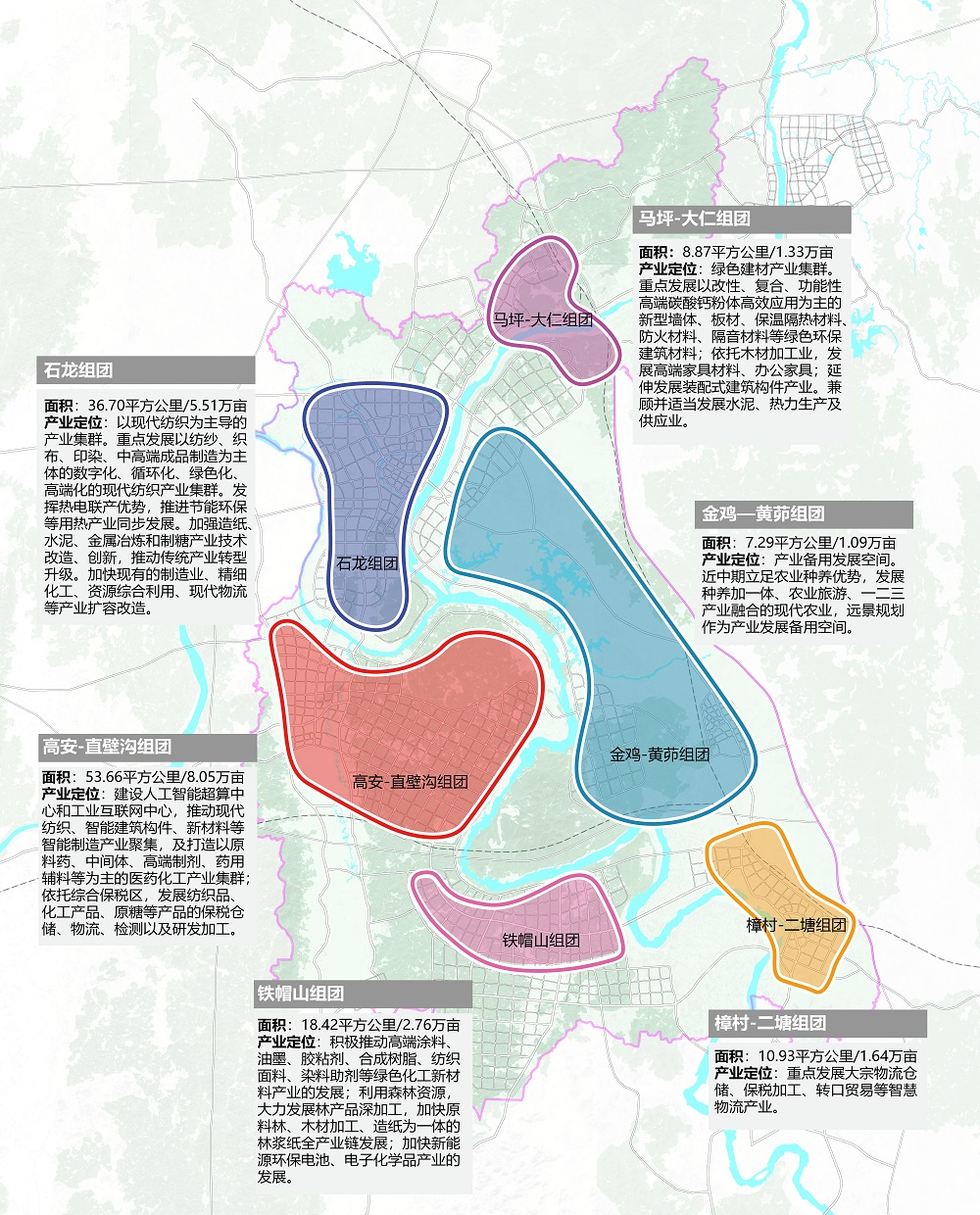 特色產(chǎn)業(yè)集群布局——綜合考慮自身優(yōu)勢資源、臨港產(chǎn)業(yè)基本形態(tài)、大灣區(qū)產(chǎn)業(yè)外溢、上位政策與規(guī)劃導(dǎo)向等影響因素的基礎(chǔ)上,三江口新區(qū)的產(chǎn)業(yè)選擇按照“灣區(qū)所需、來賓所長”和“來賓所缺、灣區(qū)所溢”的思路進行取舍,重點打造綠色建材、現(xiàn)代紡織、醫(yī)藥化工、林漿紙一體化、新能源新材料、智慧物流六大產(chǎn)業(yè)集群。