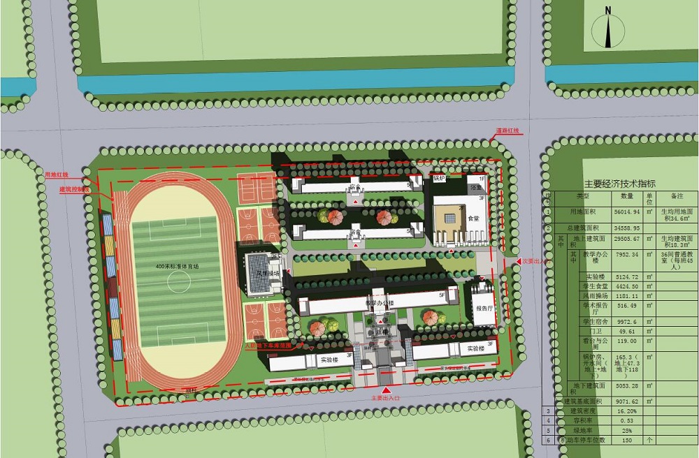 ???本項(xiàng)目用地位于日喀則市經(jīng)濟(jì)開發(fā)區(qū),辦學(xué)規(guī)模為24班的小學(xué),包括教學(xué)樓、實(shí)驗(yàn)樓、食堂、風(fēng)雨操場、宿舍樓等建筑。規(guī)劃建設(shè)用地為59721㎡,建筑總面積為32456.5㎡,其中地上建筑面積27540.69㎡,地下建筑面積4915.81㎡。建筑密度13.11%,容積率0.54,綠地率30%,機(jī)動(dòng)車停車位數(shù)196個(gè)。南側(cè)、東側(cè)、北側(cè)為規(guī)劃道路,西側(cè)緊鄰規(guī)劃曲布幼兒園和園丁苑。