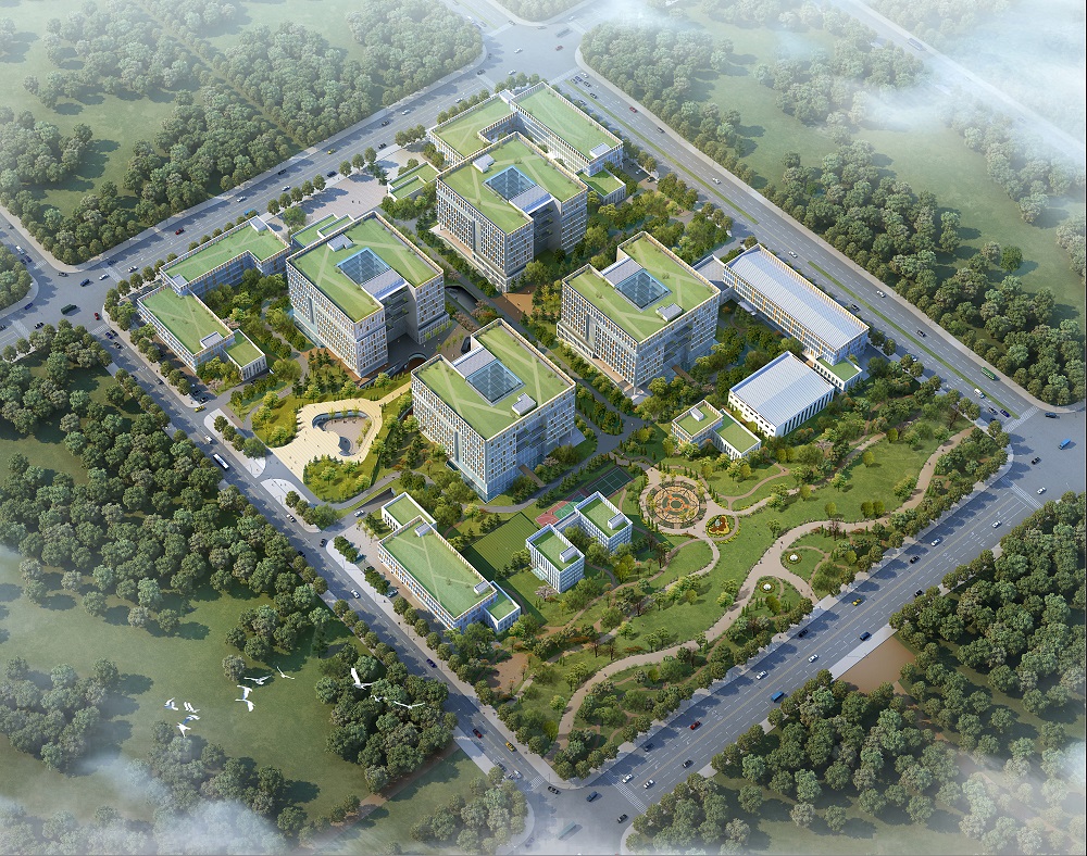 功能分區(qū):本項目設計將4棟39.4米高的主要研發(fā)辦公大樓放在場地正中,其它相關的辦公、實驗、服務配套等建筑圍繞在其中周。